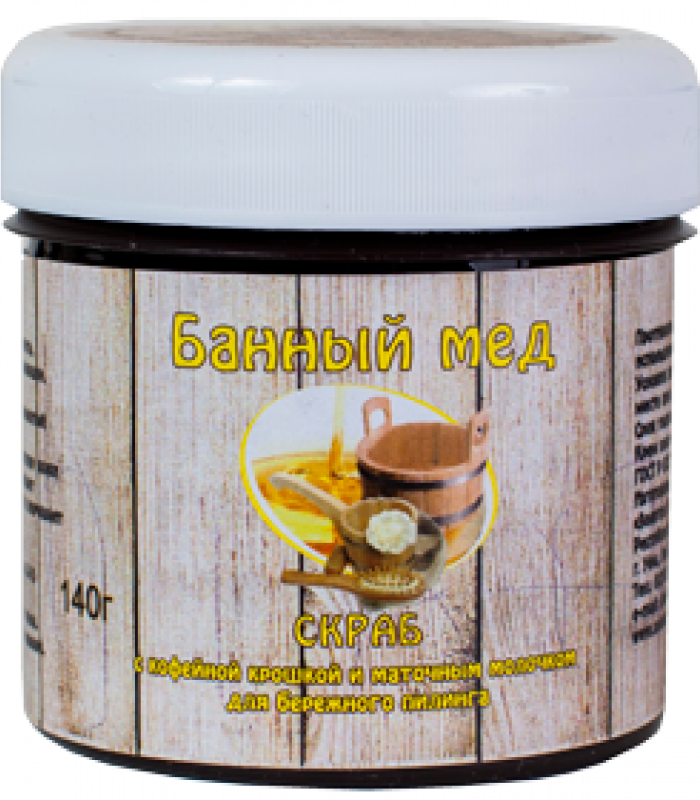 Банный мёд - скраб с кофейной крошкой и маточным молочком для бережного пилинга